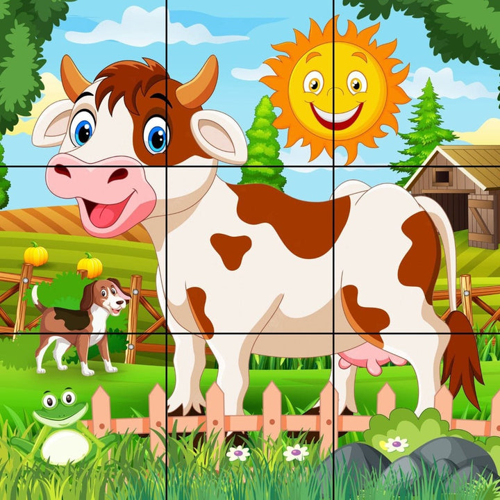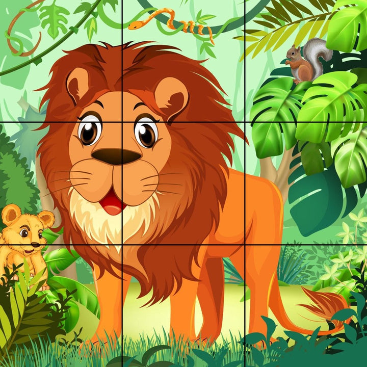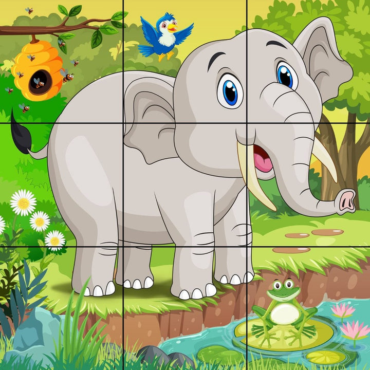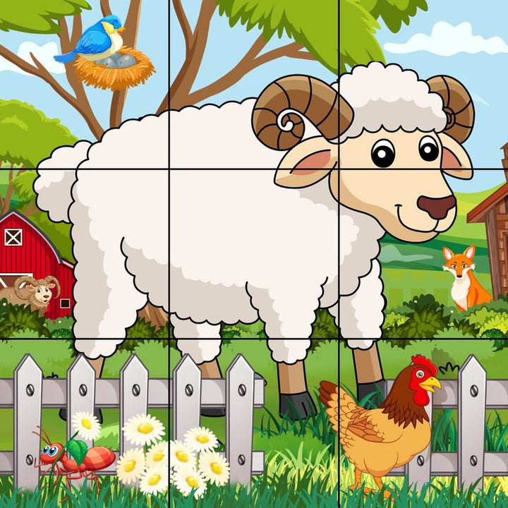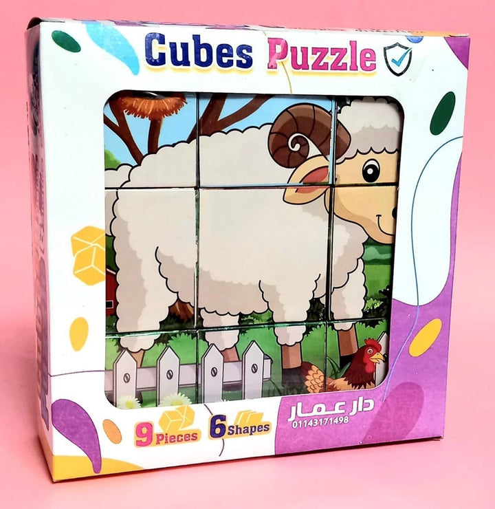 🔹 عدد القطع: 9 مكعبات تكوّن 6 أشكال مختلفة من الحيوانات