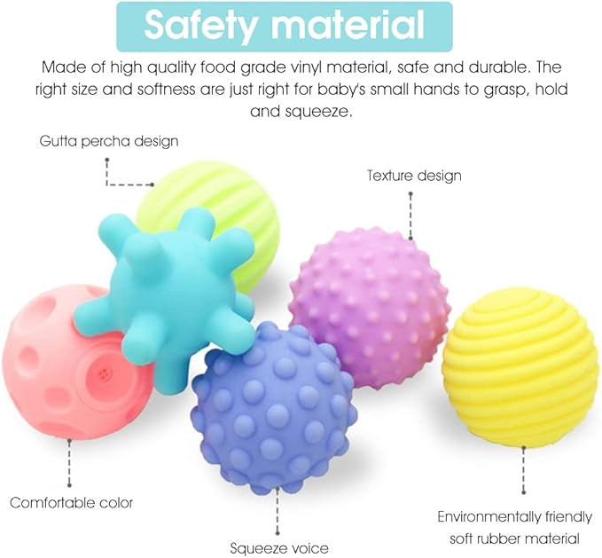 🛁 مجموعة الكرات السوفت للأطفال - 6 قطع متعددة الملمس والألوان!