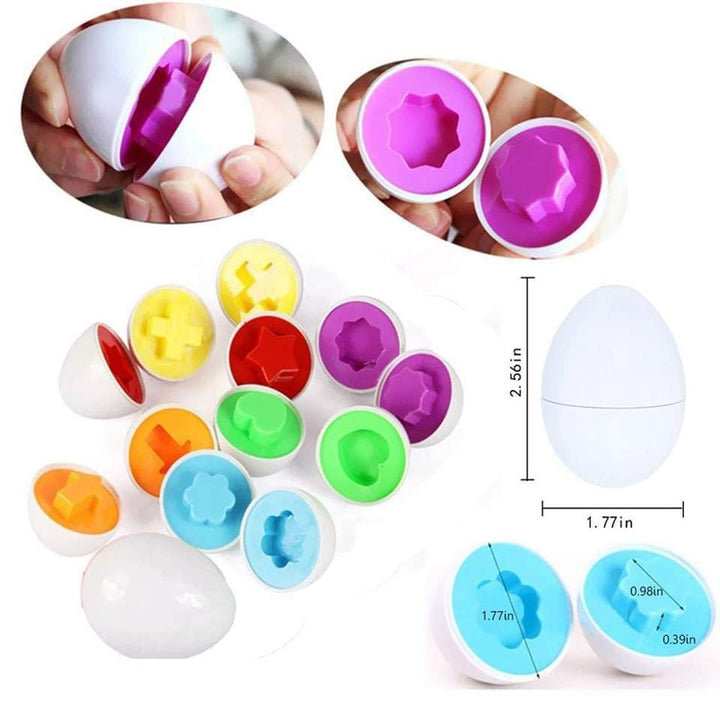 يقوم الطفل بمطابقة نصف البيضة مع النصف المشابه له من حيث اللون والشكل الهندسي، مما يساعده على التمييز بين الألوان والأشكال المختلفة بطريقة تفاعلية ومسلية!