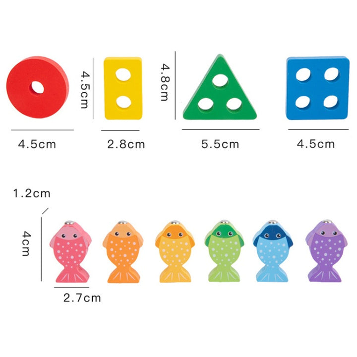 لعبة ترتيب 4 أشكال هندسية مع صيد السمك هي لعبة مبتكرة تجمع بين المتعة والتعلم وتناسب الأطفال من عمرسنتين وما فوق. تحتوي اللعبة على قاعدة خشبية بأربعة أعمدة، كل عمود مخصص لترتيب شكل هندسي معين، بالإضافة إلى قطع صغيرة على شكل سمكات تُستخدم في لعبة الصيد التفاعلية.