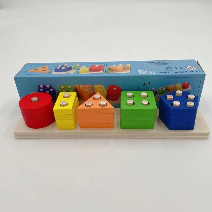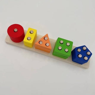 تقدم لعبة مسطرة ترتيب الأشكال الهندسية الخشبية تجربة تعليمية مميزة لطفلك من عمر 9 شهور حتى سنتين. تتألف اللعبة من قاعدة مستطيلة تحتوي على 5 أعمدة، كل عمود منها مخصص لشكل هندسي مختلف، مما يتيح لطفلك فرصة التعرف على عدد الأعمدة والقطع المتنوعة لكل شكل هندسي.