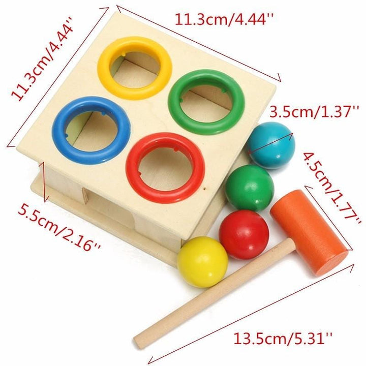 🔨 شاكوش خشبي ملون بحجم مناسب ليد الطفل لضمان تجربة لعب آمنة ومريحة.