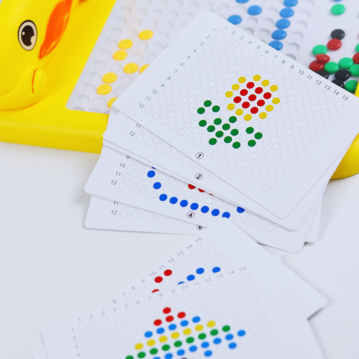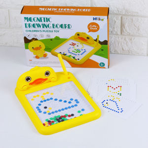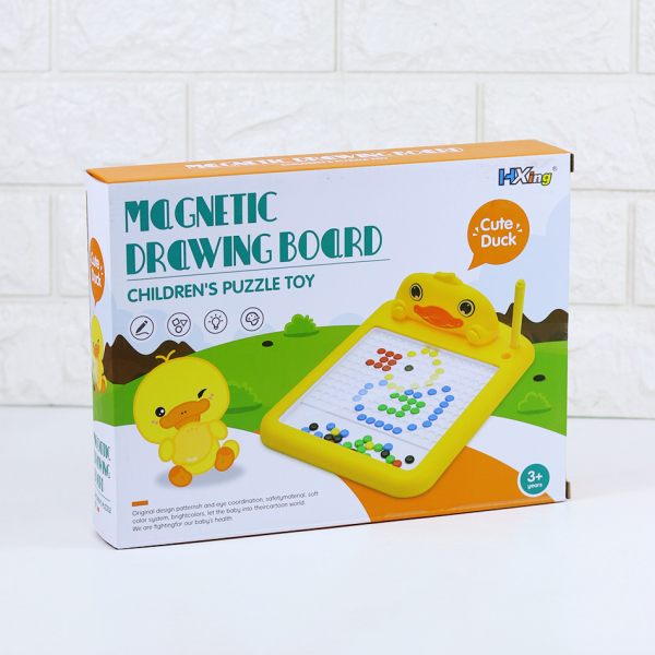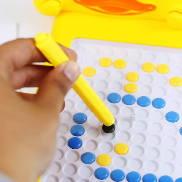 القلم المغناطيسي بيشد الكرات الصغيرة وبيظهر الشكل اللي الطفل بيرسمه… من غير أي فوضى! ولما يحب يبدأ من جديد، يقلب اللوحة ويرجع يلعب تاني.