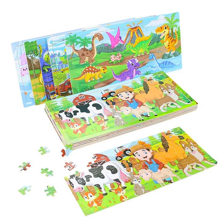 خلي طفلك يتحدى نفسه أكتر مع بازل خشبي 120 قطعة برسومات متنوعة وملونة!
