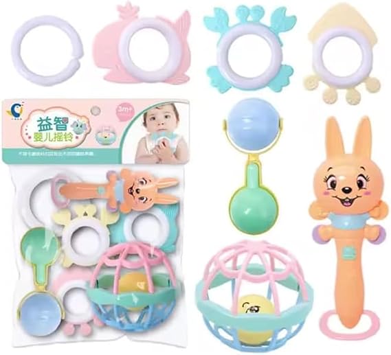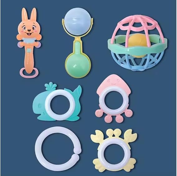 جبنالك مجموعة خشخيشات وعضاضات للأطفال – 7 قطع، تجمع بين اللعب، التعليم، وراحة البيبي. كل قطعة مصممة بألوان جذابة وأشكال محببة للطفل، تساعده على تنمية حواسه وكمان تهدئة اللثة أثناء التسنين.