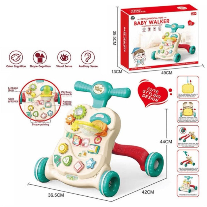 مش بس وسيلة للمشي، دي كمان مركز أنشطة مليان ألعاب تنموية تشغل حواس الطفل وتطوّر مهاراته.