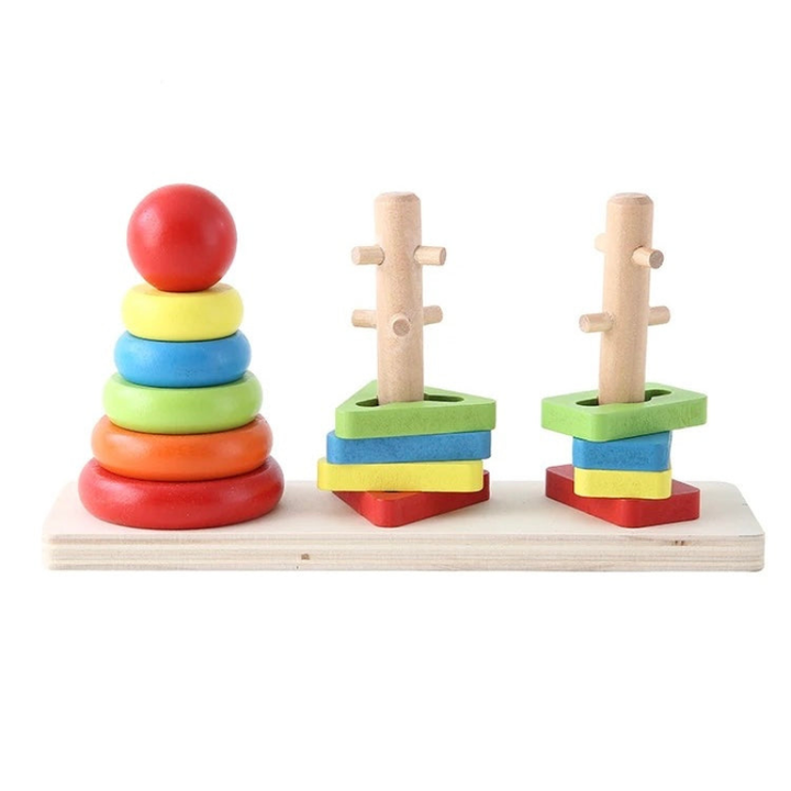 حل المشكلات وعمود الحلقات – لعبة خشبية تنموية للأطفال من سن سنتين